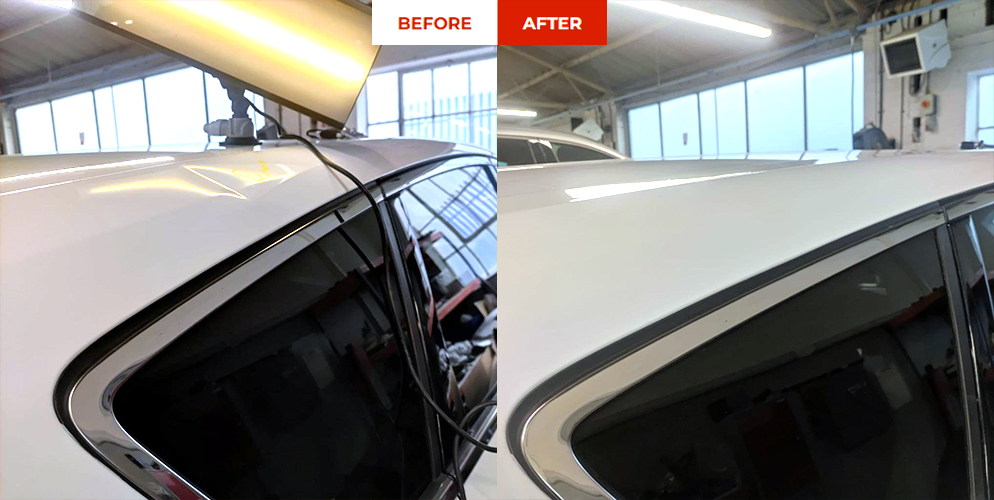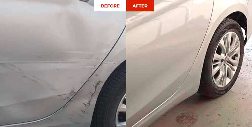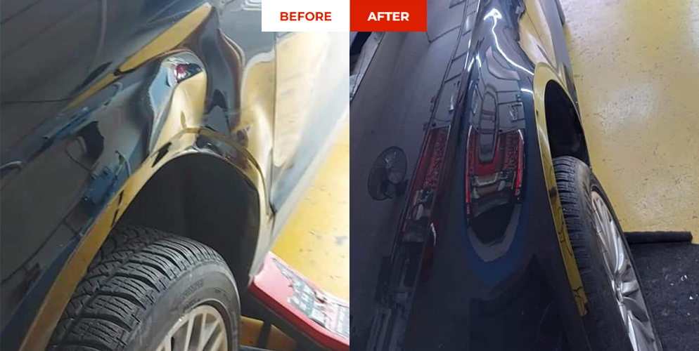 The original factory paint on your vehicle is by far the BEST paint coat and cannot be replicated. Paintless dent removal is the superior and cost effective, time saving repair method to removing minor to complex dents without affecting the factory paint finish. The dent is worked from both the front and backside of the body panel with the use of many specialised tools. With the right amount of pressure applied at the right points the dented area is massaged back to its original form.